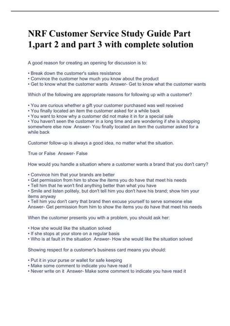 Read customer service study guide Doc